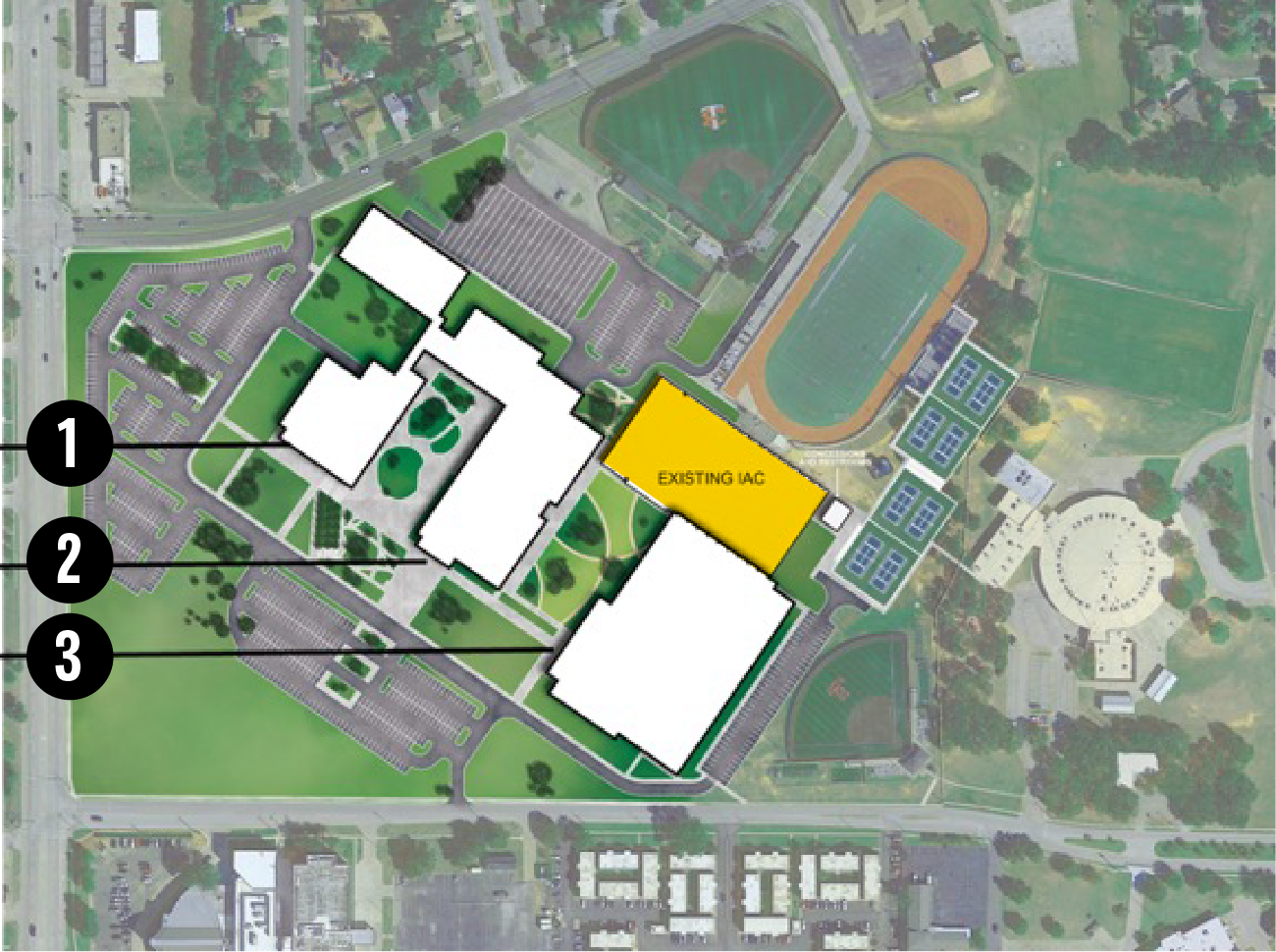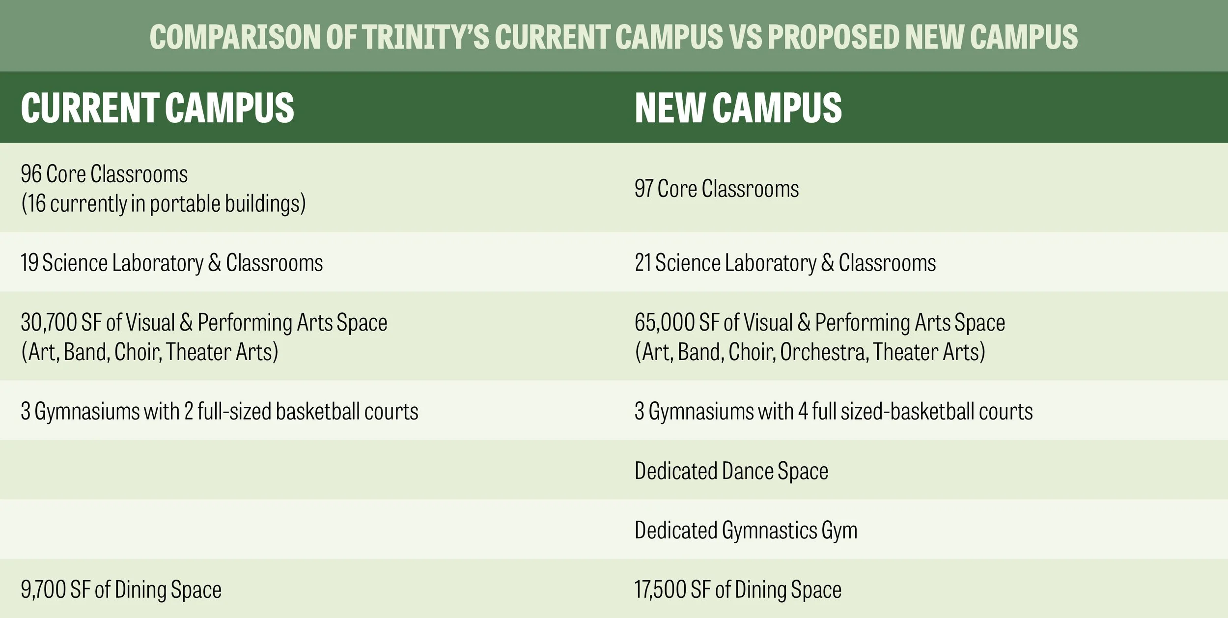 Both L.D. Bell and Trinity will be re-built on their existing property. The Conceptual Site Plans on this page illustrate the possibilities for the replacement campuses.